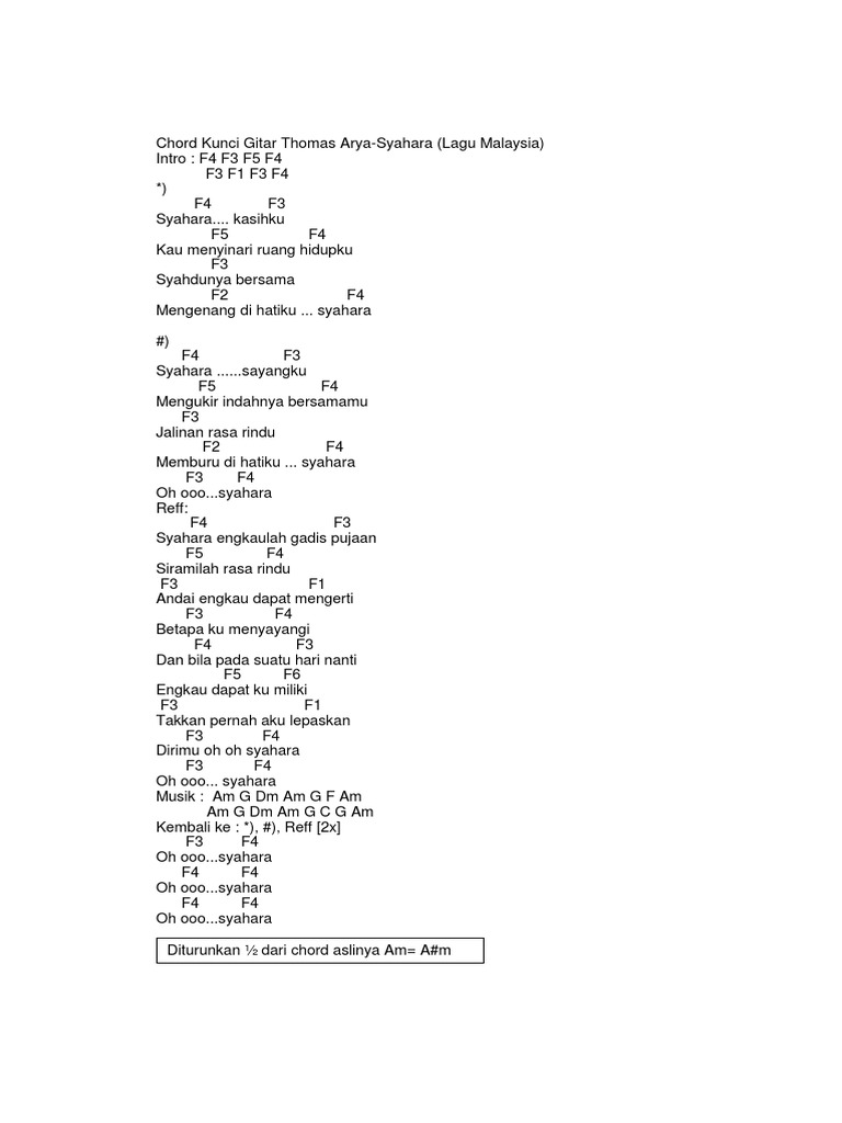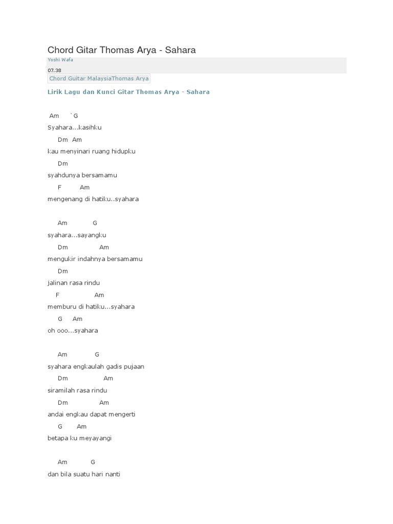 Chord Kunci Gitar Thomas Arya Syahara Lagu Malaysia